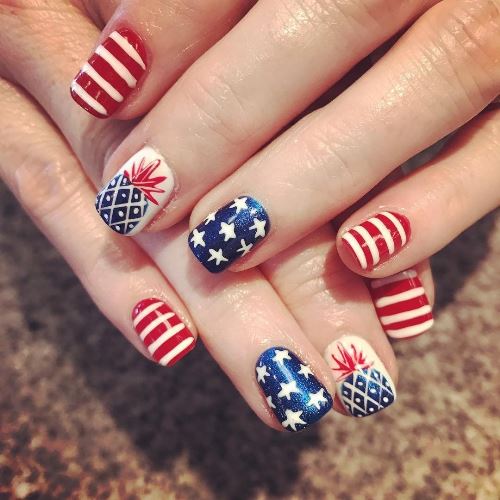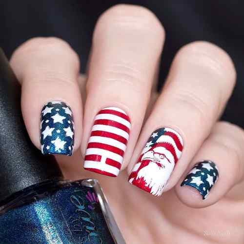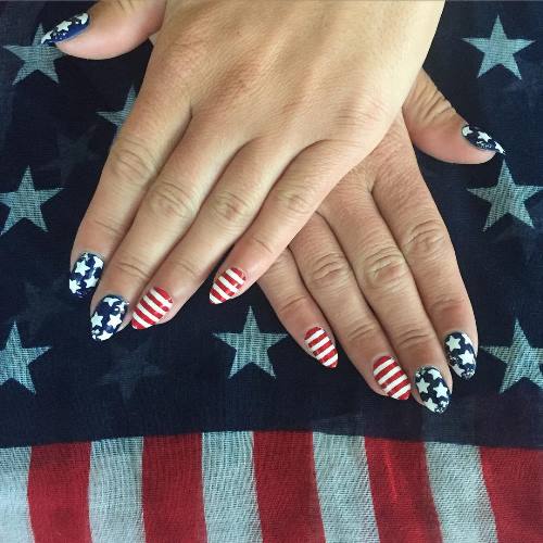 Moreover, as in our flag, there are stars and three colors combination of red, blue, and white. Design your hand nails with these colors of nail polish and decorate with images accordingly. Plenty of designs are available here select one and you can update it with your own ideas.