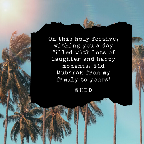 - On this holy festive, wishing you a day filled with lots of laughter and happy moments. Eid Mubarak from my family to yours!