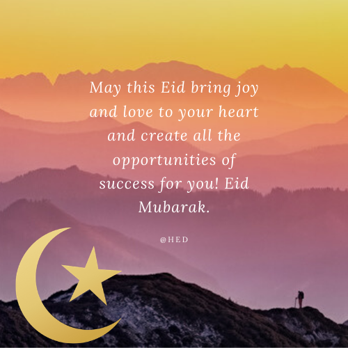- May this Eid bring joy and love to your heart and create all the opportunities of success for you! Eid Mubarak.