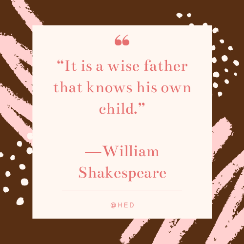 “It is a wise father that knows his own child.” —William Shakespeare