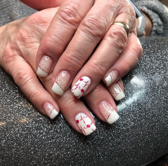 We have some special contrasts of colors. Red color contrast with silver color. Black color contrast with blue color. Grey color contrast with pure white color. Here are some designs of beautiful faces on nails with red, pink, and white colors. You can make heart designs on your nails to look acrylic.